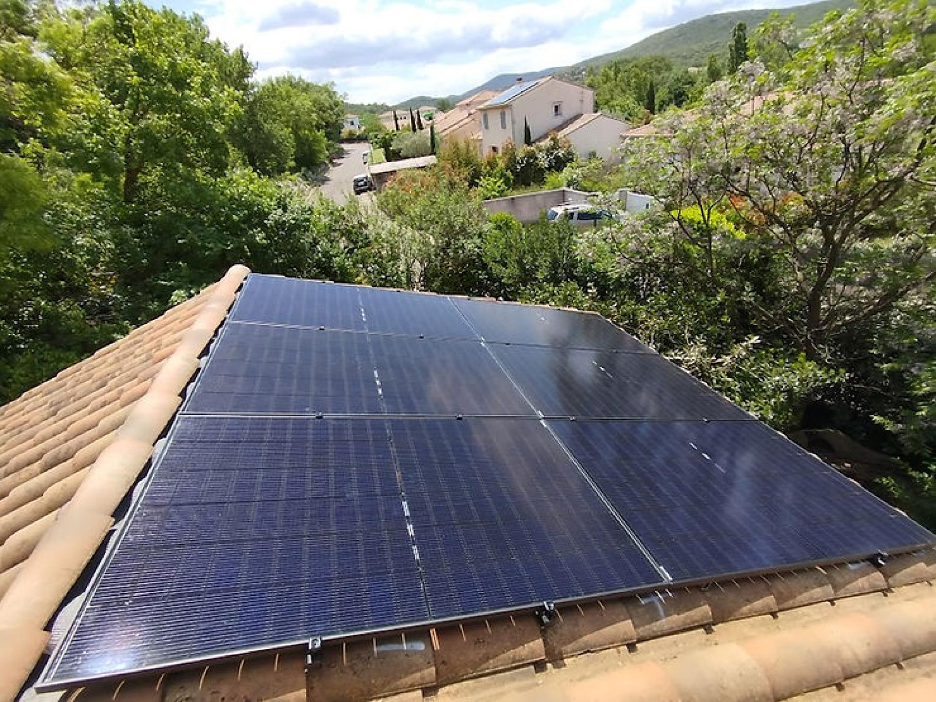 Installation solaire complète sur toiture à Saint Martin de Londres – 20 panneaux de 500 Wc + batterie de stockage