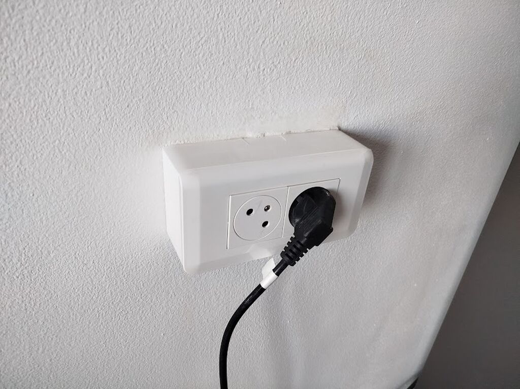 Dans la cuisine, Infiny Élec a réalisé la pose de 2 prises 230V encastrées, tandis que la salle de bain a été équipée de 4 prises Legrand Mosaic en saillie, installées avec goulottes, câbles et petits matériels de fixation, conformément aux normes en vigueur pour les zones humides.