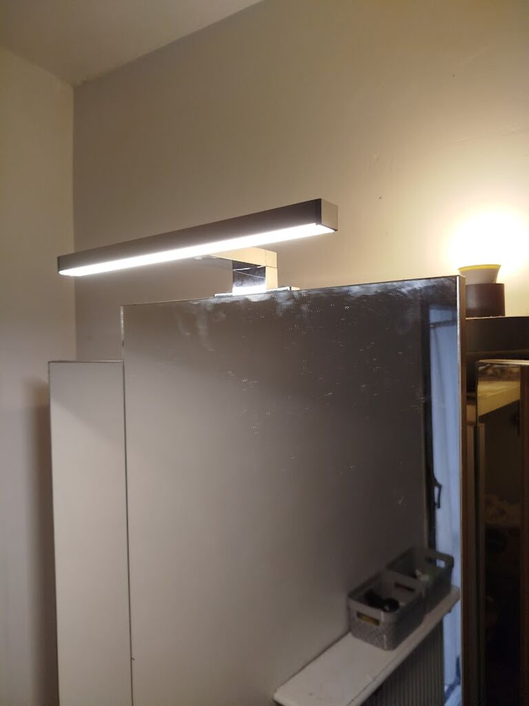 Les travaux incluent également le remplacement complet des appareillages électriques par une gamme Legrand Mosaic, comprenant 19 prises, 10 interrupteurs simples et 2 interrupteurs compacts pour pièces humides. L’éclairage est modernisé par l’installation de 7 hublots plafonniers, d’une applique de salle de bain et d’une applique de cuisine.