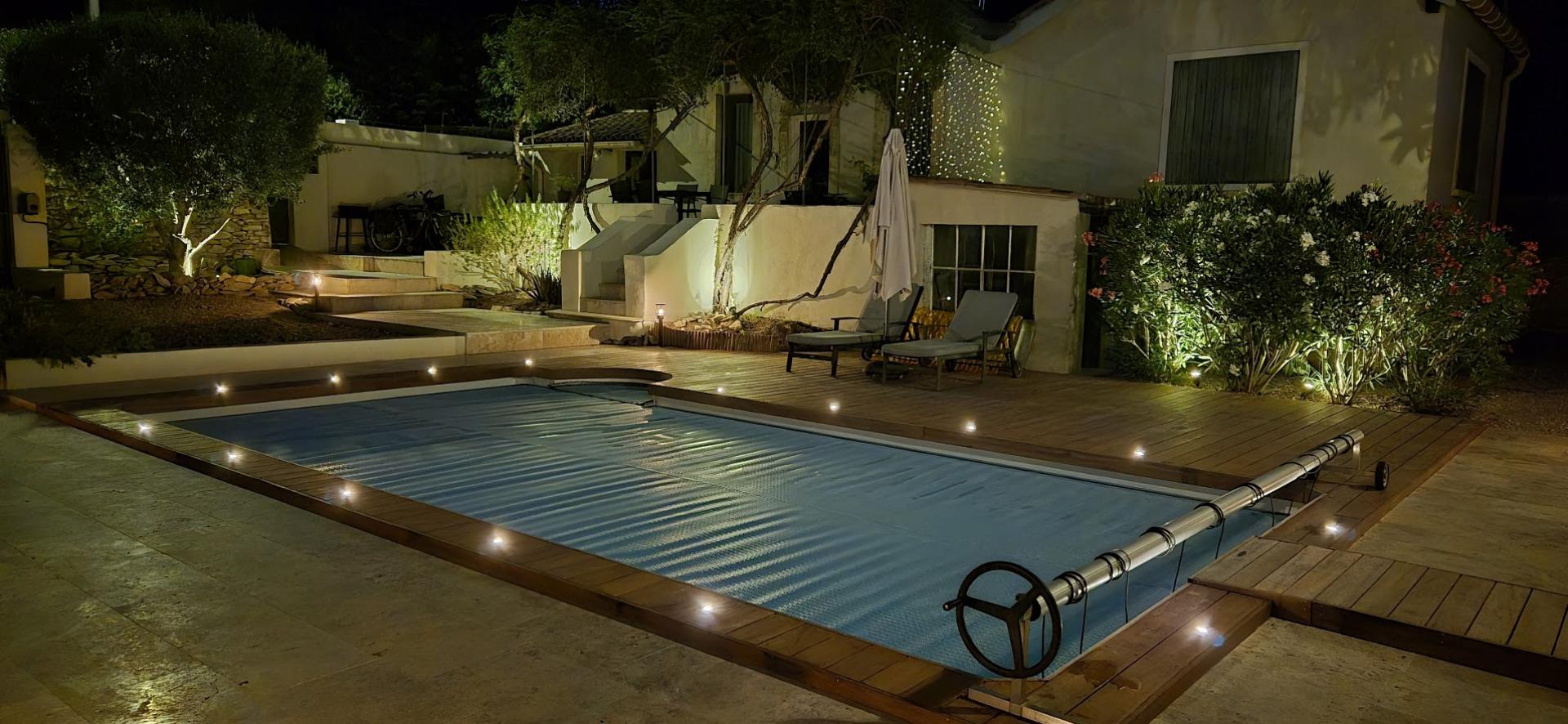 Installation complète d’éclairage extérieur LED et balisage sécurisé de piscine et jardin à Montpellier /Nîmes par Infiny Élec
